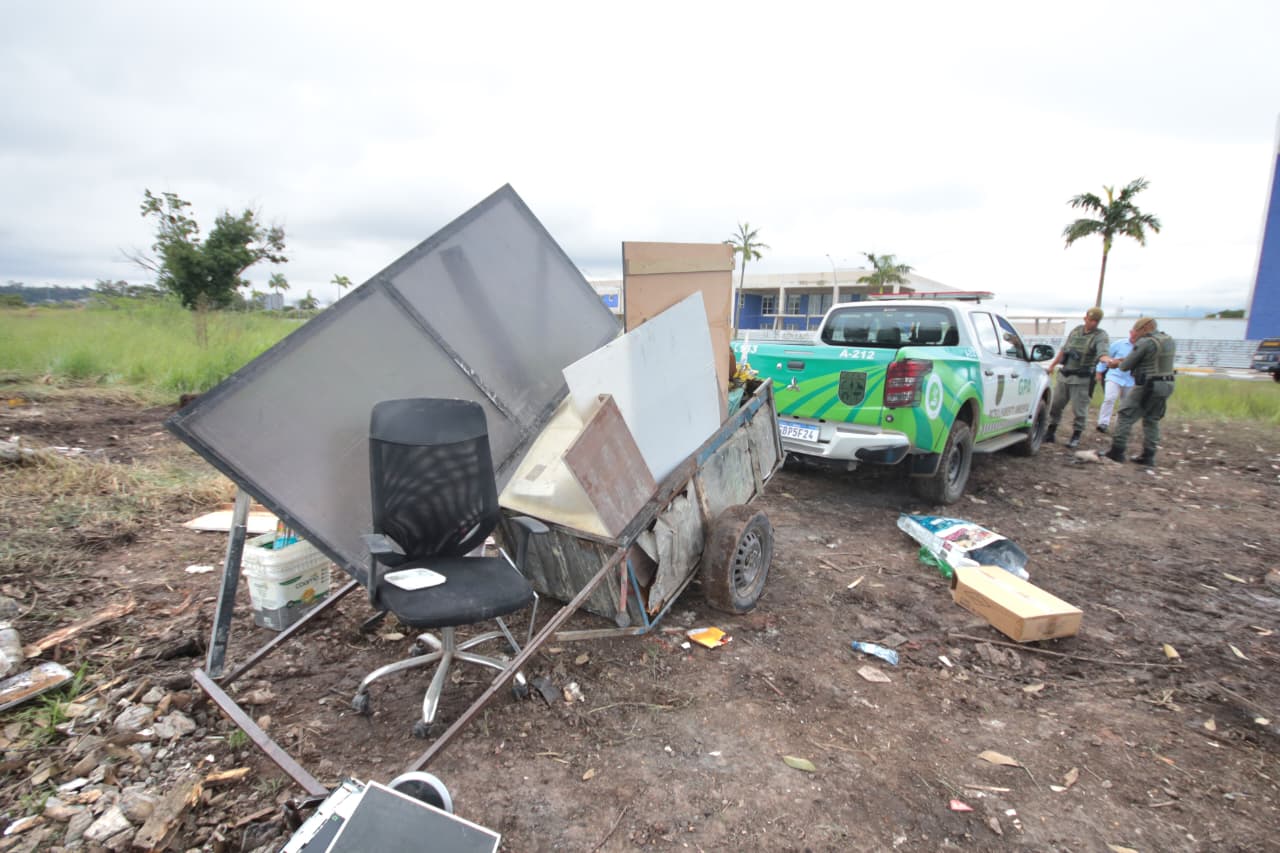 Além da atuação do GPA, o Departamento de Fiscalização de Posturas também participou da ocorrência. Os fiscais apreenderam os resíduos descartados irregularmente e o carrinho utilizado para transportar o material.